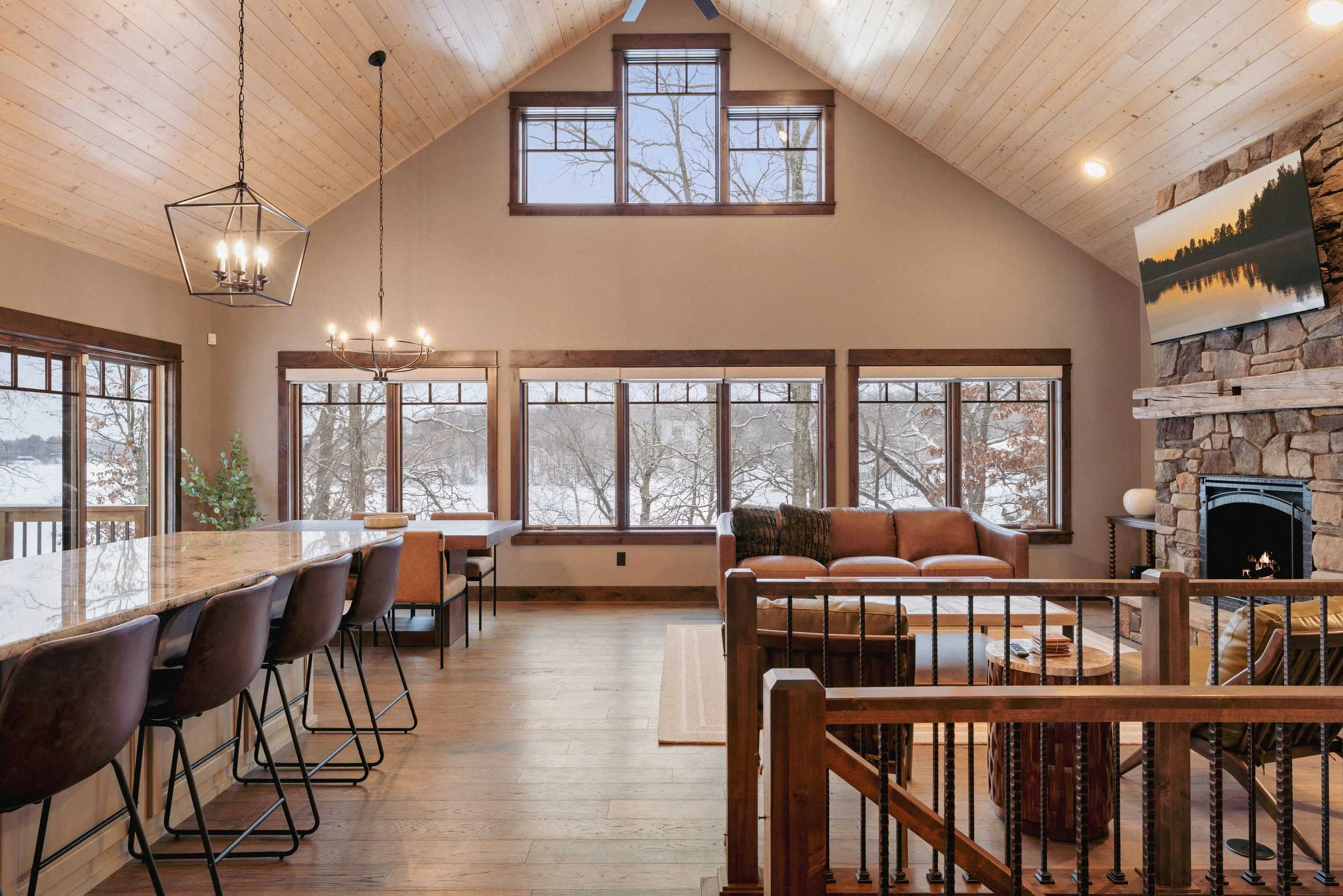 The home itself is designed in the Nordic tradition: natural materials, warm textures, clean lines, and an intentional flow between indoors and out. Every room feels considered. Every view feels earned. And when you're ready to explore, downtown Nisswa is just a short bike ride away — with shops, restaurants, and the beloved Nisswa Turtle Races in summer.